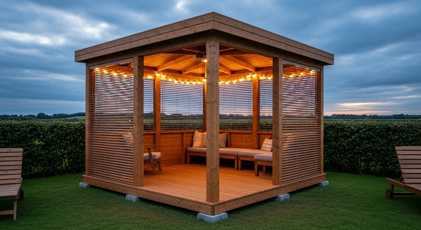 Altana drewniana 3×3 m – nowoczesna altana ogrodowa z lamelami
